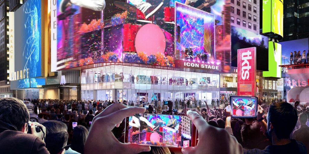 Đối với các nhà tiếp thị, quảng cáo Quảng trường Thời đại nhận được khoảng 1,5 triệu lần hiển thị mỗi ngày. Hơn thế nữa, vào dịp đêm giao thừa thả quả cầu pha lê, có gần một triệu người tập trung khu vực này, khả năng tiếp cận tăng lên con số cực khủng.